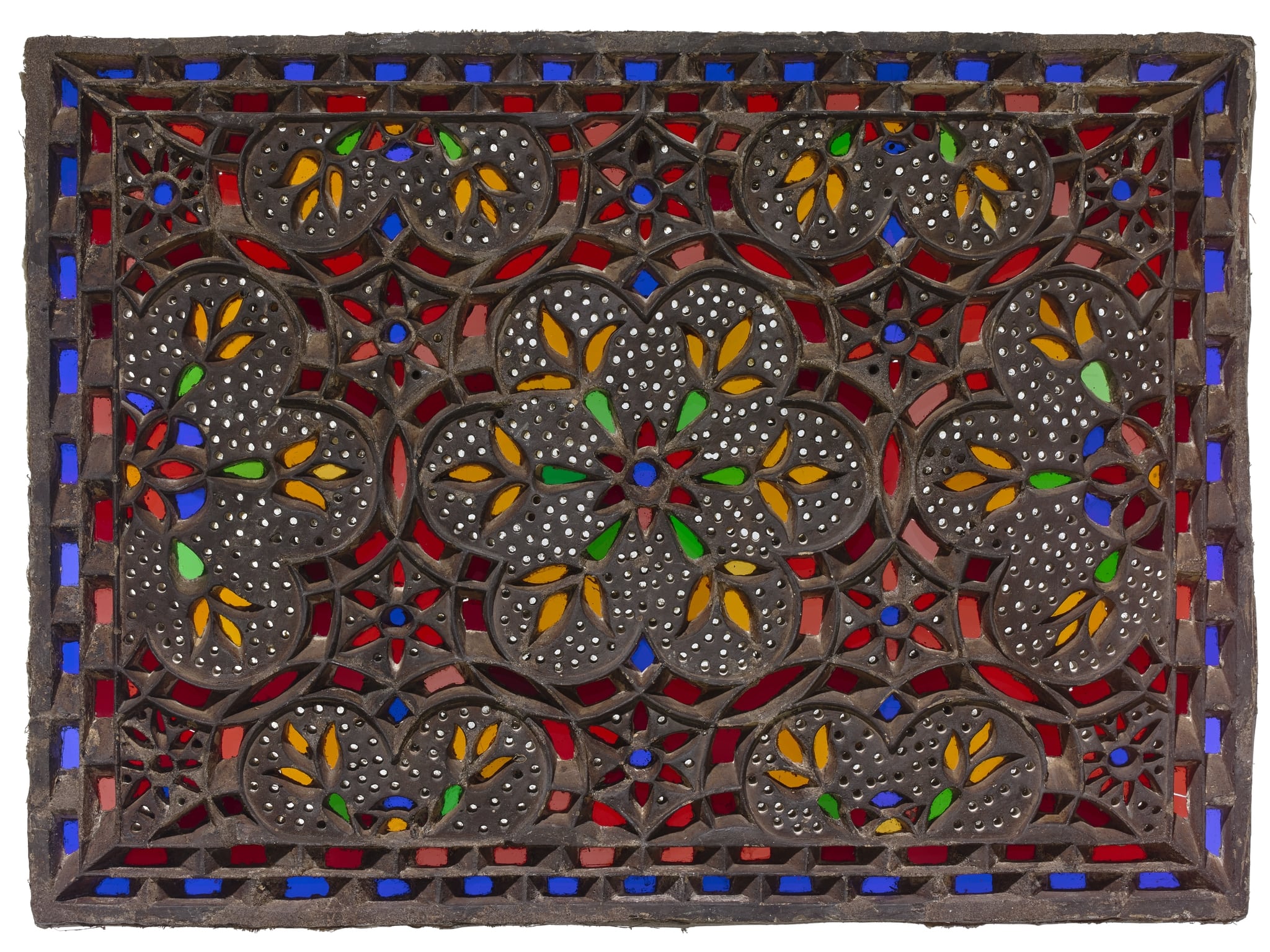 This stucco and glass window corresponds iconographically and technically to one of the standard types of qamariyya widespread in Egypt during the Ottoman period. However, sexfoil ornaments with flowers are far less common than other floral and geometric compositions. Nevertheless, a picture taken by the Italian photographer Beniamino Facchinelli (1839–1895) at the Museum of Arab Art in Cairo (IG_206) confirms the occurrence of this type of windows in the Egyptian capital. Even though the qamariyya represented on the photograph is much more elaborate than the Louvre specimen discussed here, both windows show a symmetrical distribution of sexfoils and flowers that create a repeating pattern.