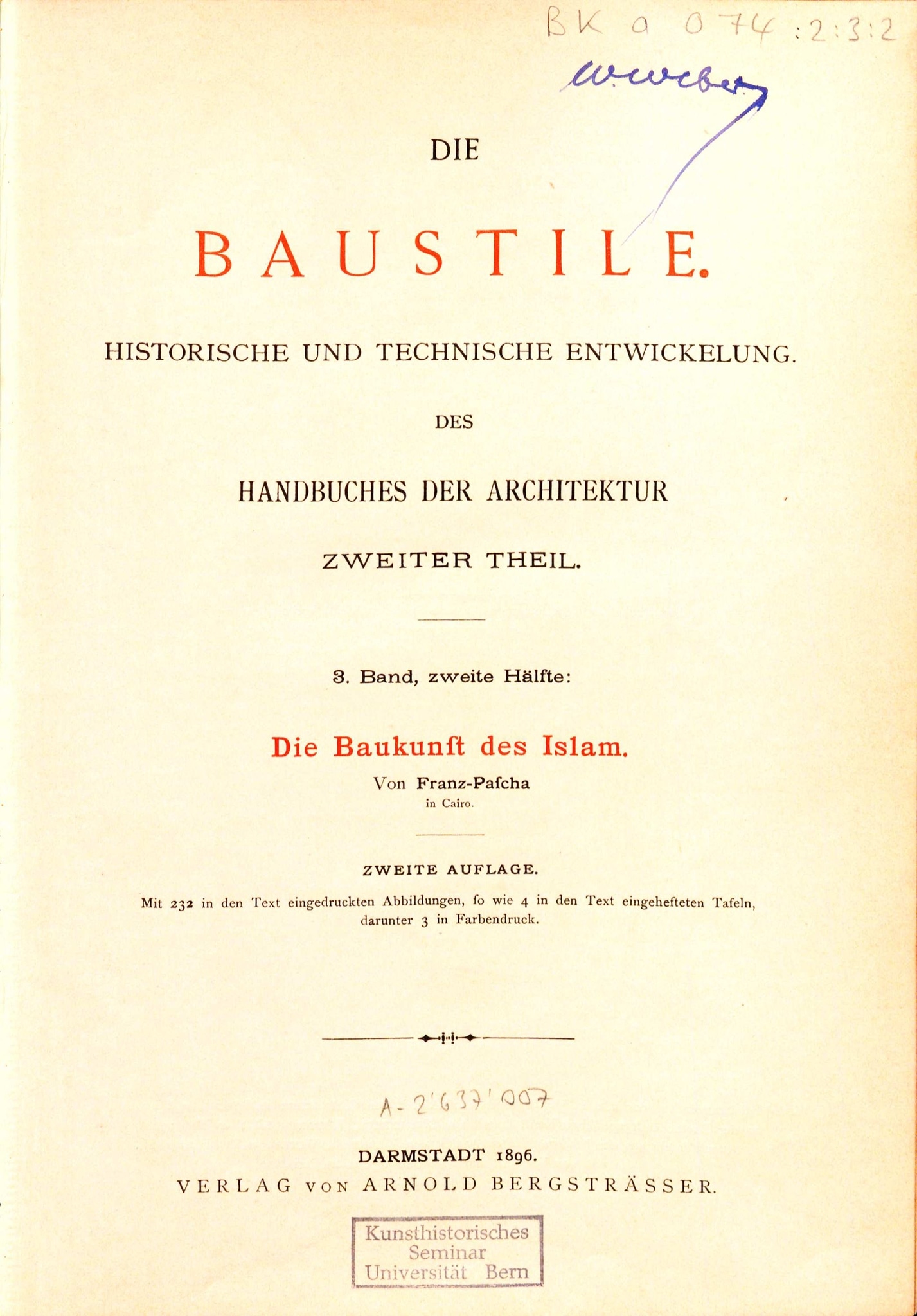 Julius Franz’s Die Baukunst des Islam, published as part of the 143-volume Handbuch der Architektur, is, as Pflugradt-Abdel Aziz has shown (2013, p. 16), a pioneering work on account of its historical and scientific approach. The German architect and co-founder of the Museum of Islamic Art in Cairo describes stucco and glass windows in his chapter about building materials and construction technology. He states that such windows still can be found in many houses and mosques, but that the art of making them has been lost (Franz, 1887, p. 31).