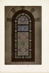 The three stucco and glass windows illustrated by Melchior de Vogüé were previously in the octagon of the Dome of the Rock in Jerusalem. The qamariyya depicted here formerly was in window 27 of the octagon. It bears the second part of the name of Sultan Suleiman Qanuni: [(Sultan Suleiman) son of the Sultan Selim Khan, son of Bayazid]. This naming of Sultan Suleiman as well as certain motifs, such as the quadrilobed medallion (see IG_72), suggest that the windows recorded by de Vogüé in 1864 were the ones installed during the renovation in 1528. In contrast, the windows replaced in 1291 AH /1874 CE bore the name of Sultan Abdulaziz (Flood, 2000, p. 435).