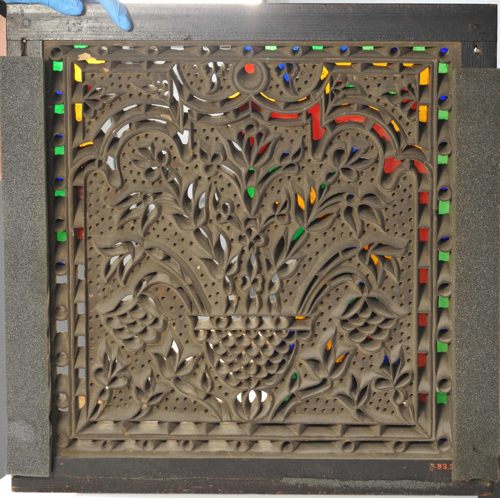 This stucco and glass window was produced according to the traditional method used in the manufacture of qamariyyāt in North Africa to this day (see Technique) and represents a motif that was widespread in Egypt during the Ottoman period. Similar windows have survived in several of the collections studied (see for instance IG_7, IG_166, IG_178, IG_255, IG_356).