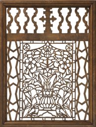 Rectangular wooden latticework backed with enamel-painted sheet glass. The latticework has an average thickness of 8–10mm and is painted with brown paint and varnish.
