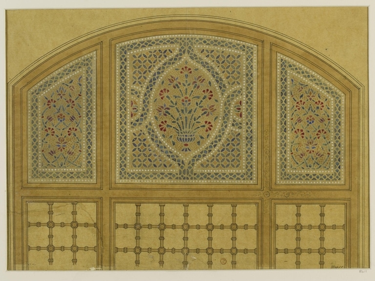 This drawing made by Henry Young Darracott Scott (1822–1883) and dated 1866 shows the stucco and glass window designed by the British architect James William Wild (1814–1892) for the Oriental Courts of the South Kensington Museum in London.