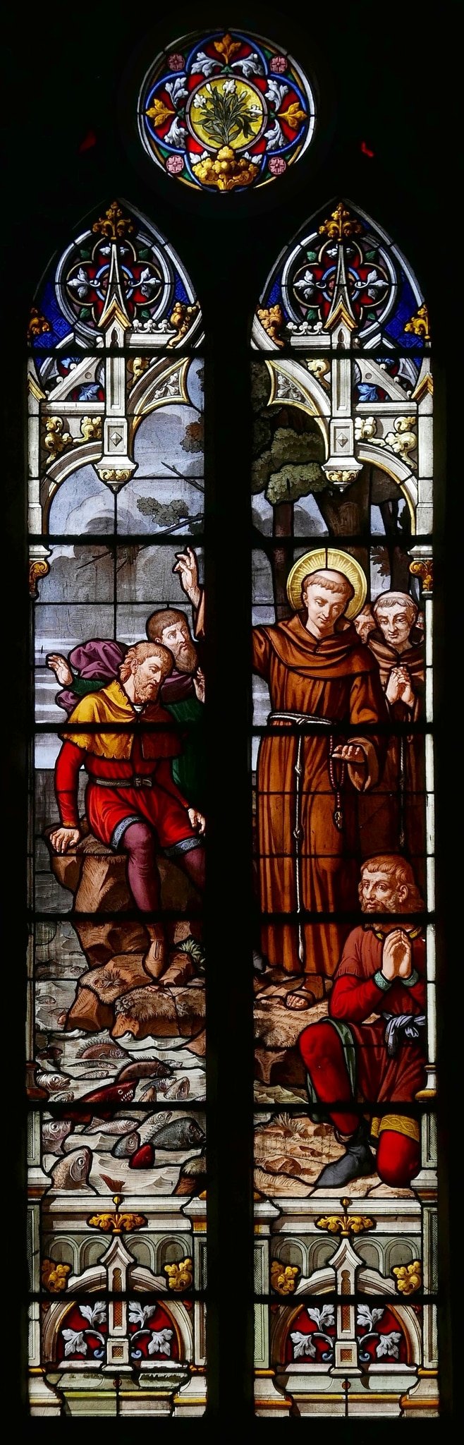 Eine von 35 Glasmalereien der spätgotischen Kathedrale Saint-François de Sales in Chambéry, die zwischen 1860 und 1876 vom Atelier Gsell-Laurent in Paris hergestellt wurden.