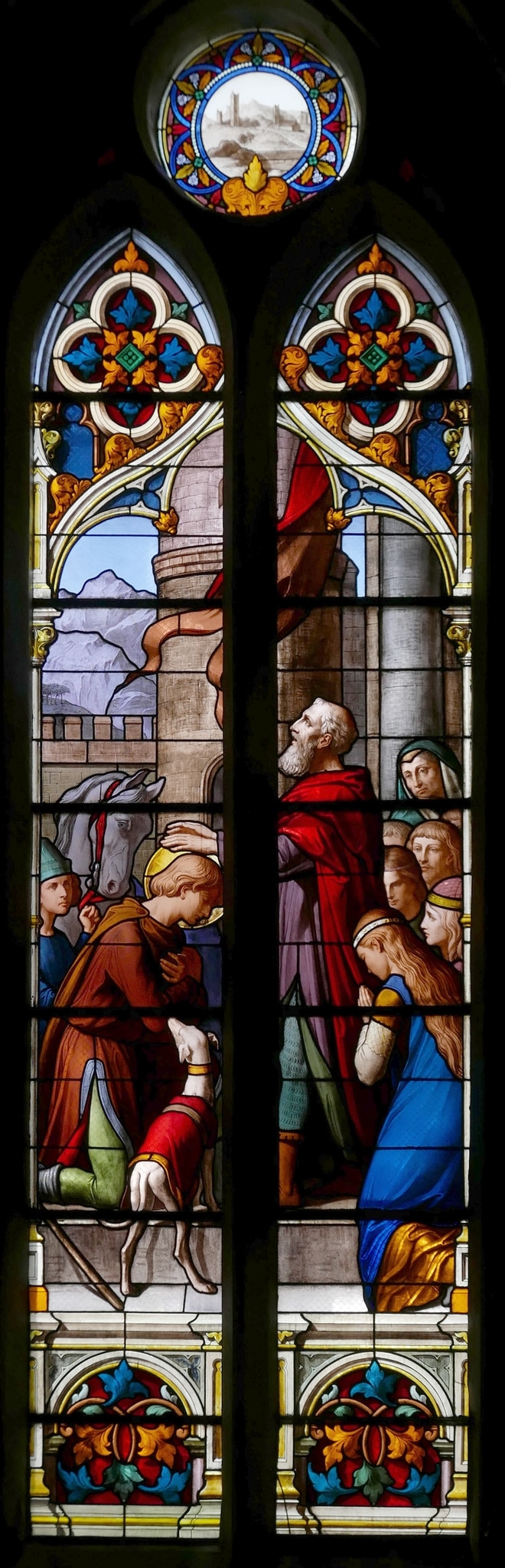Eine von 35 Glasmalereien der spätgotischen Kathedrale Saint-François de Sales in Chambéry, die zwischen 1860 und 1876 vom Atelier Gsell-Laurent in Paris hergestellt wurden.