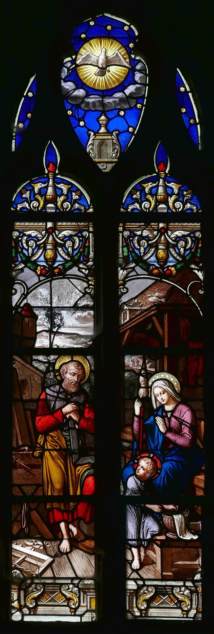 In der zweiten Hälfte des 19. Jahrhunderts setzten sich die beiden Pfarrer François Xavier Lemaire (1858–1867) und Célestin Laurent (1867–1897) für die Restaurierung der Kirche Notre-Dame von Senlis und ihre Ausstattung, unter anderem mit einem umfangreichen Glasmalereiensemble, ein (Aubert, 1910, 49). Dazu gehören die beiden Glasmalereien in der Josephskapelle von 1877 (CG_278, CG_279) aus dem Pariser Glasmalerei-Atelier Gsell-Laurent (das dritte Fenster der Kapelle zum Tod Josephs ist nicht erhalten; siehe Laurent, 1889, 16–17).