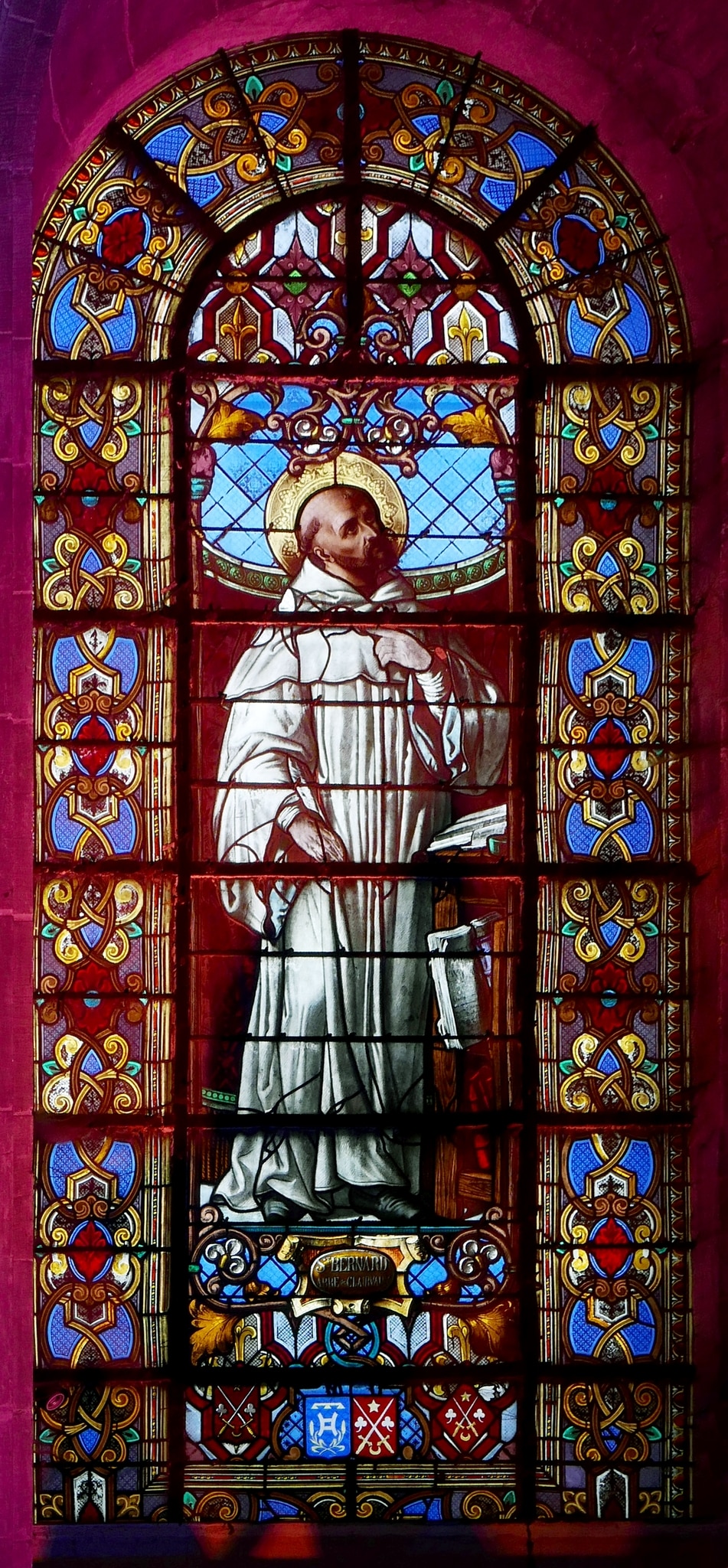 Das Bernhard von Clairvaux-Fenster ist eine von 14 Glasmalereien mit Heiligenfiguren aus dem Pariser Glasmalerei-Atelier Laurent, Gsell et Cie. (später Gsell-Laurent), die 1863 in Chor und Schiff der Kirche Notre-Dame de l’Assomption in Saint-Dizier eingesetzt wurden. Damals engagierte sich der Pfarrer Pierre Marie Didelot (1803–1873) stark für die Ausstattung der Kirche. Bürger und Bürgerinnen sowie verschiedene Vereinigungen und Zünfte von Saint-Dizier stifteten die Glasmalereien. Sie zeigen Vorbilder des christlichen Lebens und Schutzpatrone und weisen mehrere Bezüge zur örtlichen Eisenindustrie auf. Im Chor und auf der Nordseite des Schiffs sind männliche Heilige gezeigt, auf der Südseite des Schiffs weibliche Heilige. Die sechs Fenster im westlichen Teil des Schiffs sind kleiner als die vier Fenster im östlichen Teil des Schiffs und im Chor. Alle Fenster sind nach dem gleichen Prinzip gestaltet, lassen sich aber aufgrund unterschiedlicher Ornamentrahmen in drei Gruppen gliedern. Insgesamt kosteten die Glasmalereien 15’000 Francs. Die Glasmalerei des heiligen Bernhard von Clairvaux stifteten Nachkommen von Jules Becquey (1802–1863), Gemeindepräsident von Saint-Dizier (Didier, 1897, S. 179).
