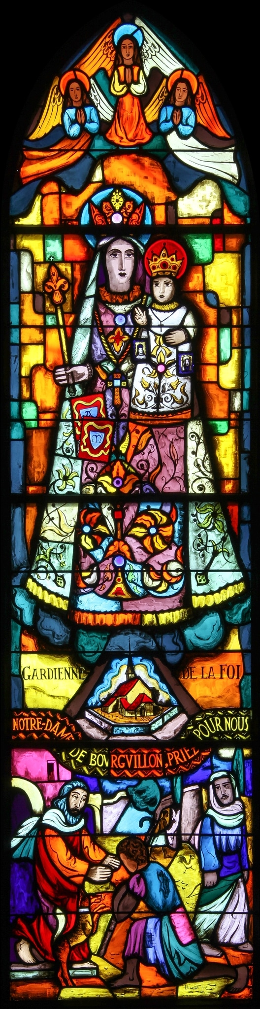 GARDIENN[E] DE LA FOI / NOTRE-DAM[E] DE BOVRGVILLON ,PRIEZ POUR NOUS (sous Notre-Dame)