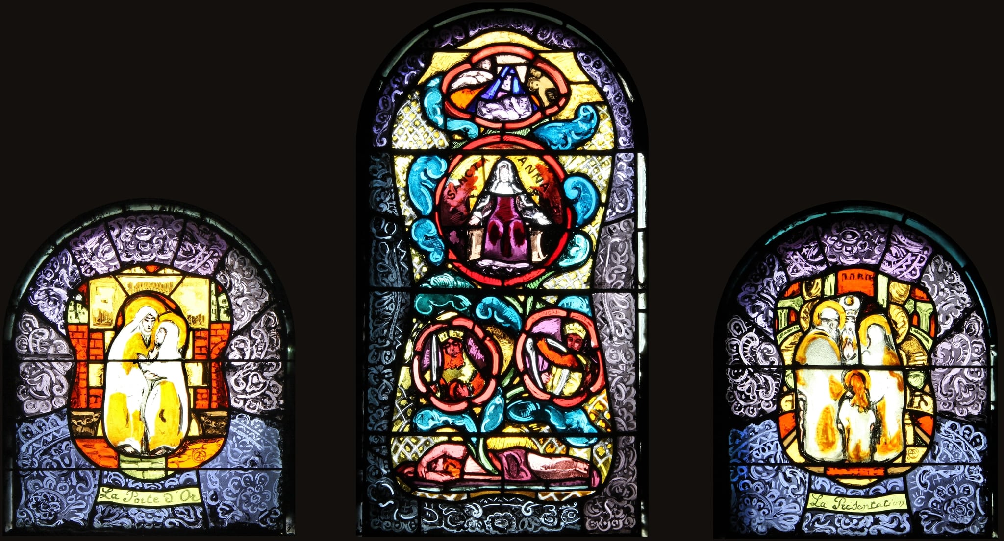 Cet ensemble est composé de trois fenêtres relatant différents épisodes de la vie de sainte Anne.