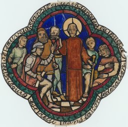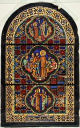 Cette verrière est composée de trois scènes superposées relatant différents épisodes de la vie de Nicolas de Flüe, inscrites dans des quadrilobes.
