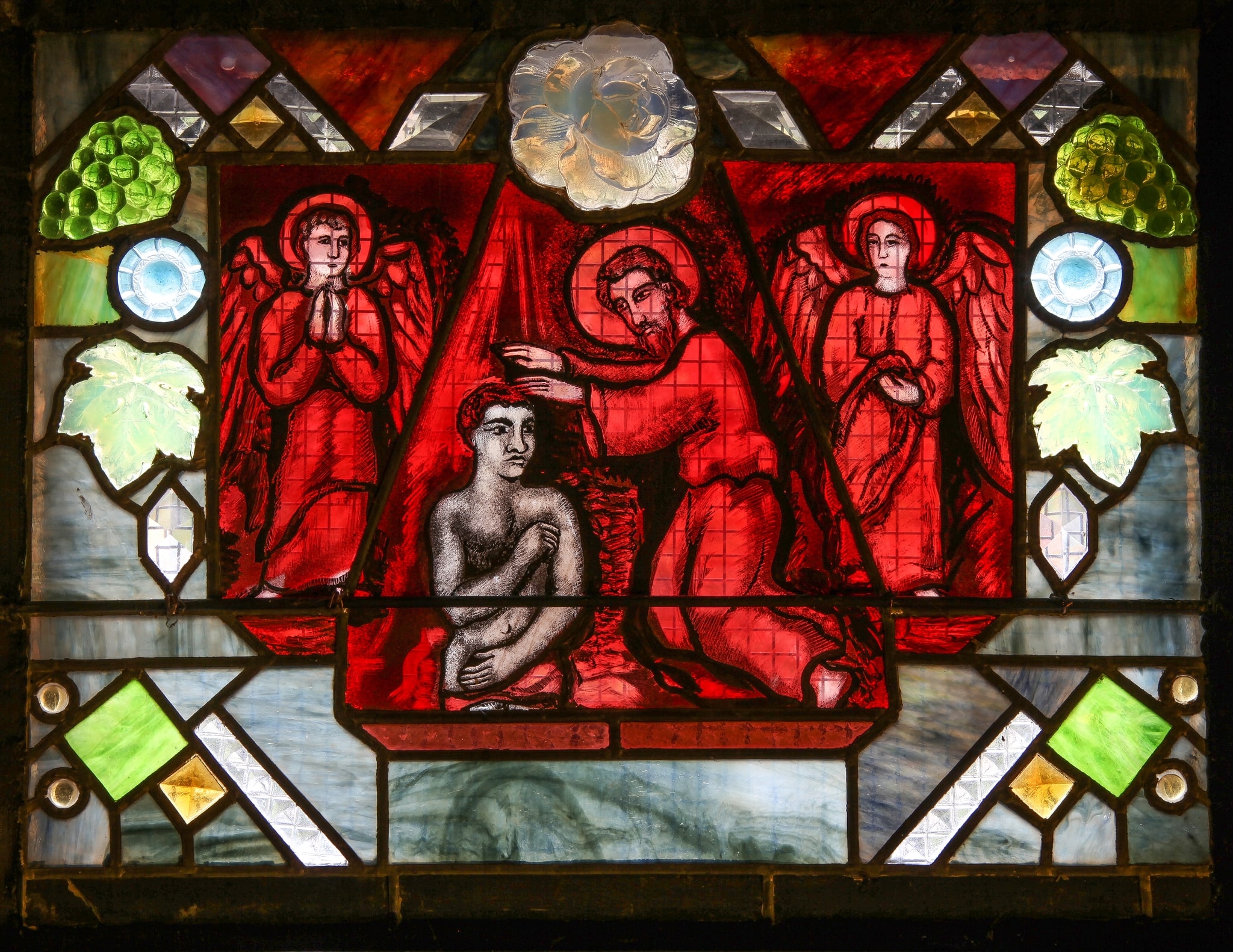 Ce vitrail a été réalisé en 1929 par Eugène Dunand pour le baptistère de l’église Notre-Dame-de-l’Assomption de Finhaut, construite par l’architecte phare du Groupe de Saint-Luc, Fernand Dumas. Dunand est également mandaté pour la création des vitraux du choeur, dont l’un est offert par Dumas (Dumas, 1930), ainsi que pour celle des petites verrières des fenêtres basses de la nef et la réalisation des vitraux d’Alexandre Cingria dans les fenêtres de la nef, côté nord (Dunand, 1929).