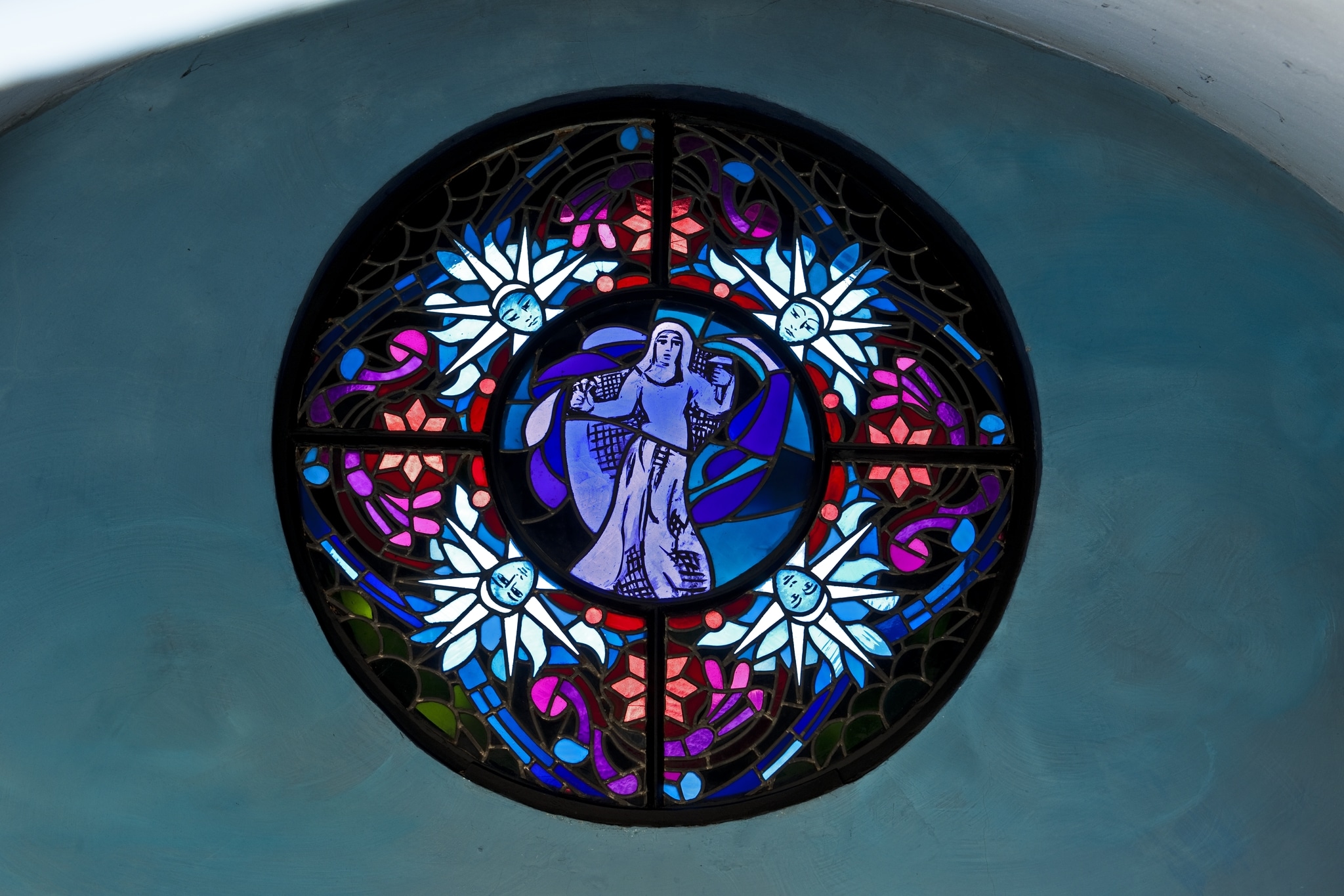 Ce vitrail a été réalisé par l’artiste genevois Alexandre Cingria et l’atelier Chiara de Lausanne pour l’une des sept ouvertures de la coupole surmontant le choeur hémisphérique de la nouvelle chapelle de l'Hôtellerie franciscaine à Saint-Maurice (ancien scolasticat puis Foyer franciscain), édifiée en 1940 par l’architecte romontois Fernand Dumas, également auteur de la restauration de l’ancienne chapelle entre 1929 et 1932.