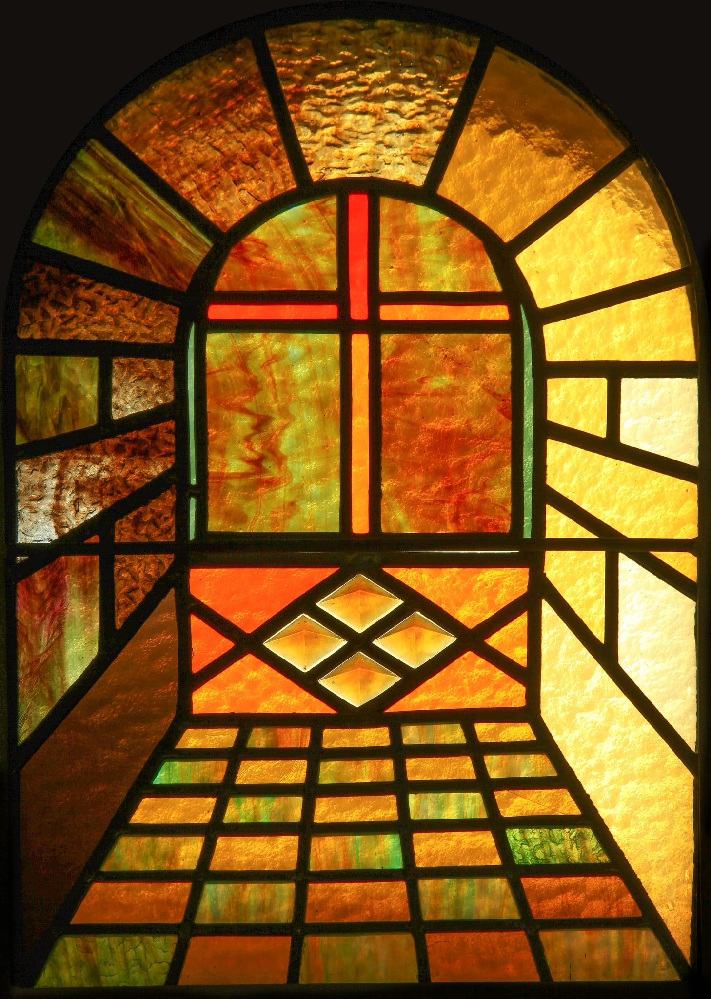 Vitrail au plomb, verre cathédrale, verre opalescent, verre chenillé, cabochons