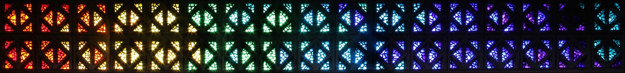 Les couleurs sont disposées dans un dégradé de coloris allant des teintes froides, côté choeur, au teintes chaudes, côté tribune.