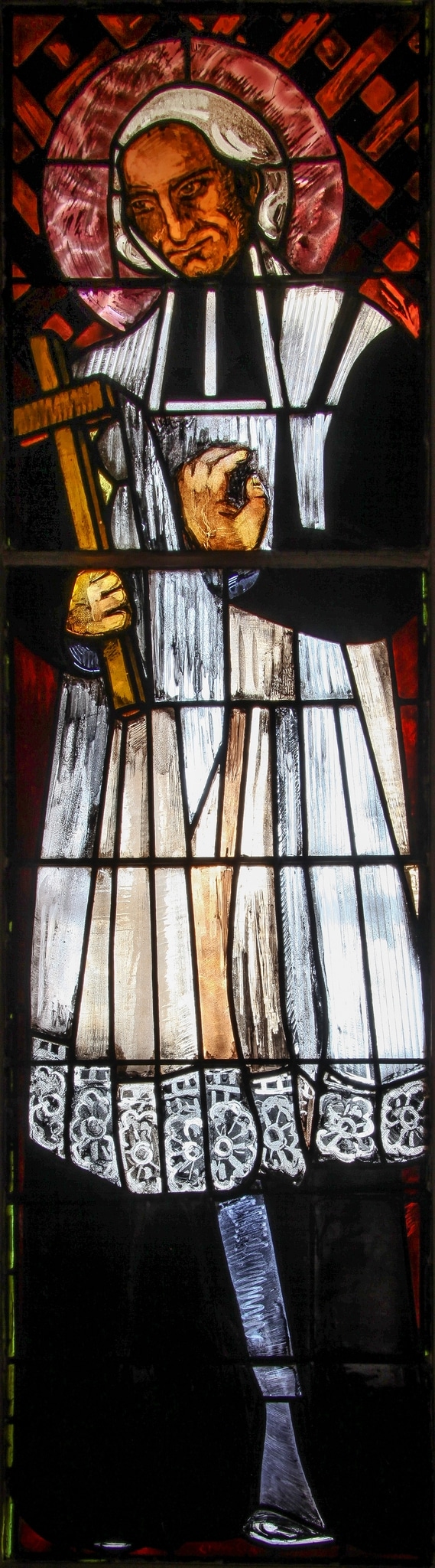 Ce vitrail consacré au curé d’Ars est l’oeuvre de l’artiste central du Groupe de Saint-Luc, Alexandre Cingria, en collaboration avec l’atelier vaudois Chiara. Il se situe à côté des confessionnaux vers l’entrée sud-est de l’église du Christ-Roi de Tavannes, église construite par l’architecte genevois Adolphe Guyonnet. Dans le répertoire de ses oeuvres d’art religieux établi par l’artiste lui-même, Cingria mentionne sa réalisation à Tavannes et la date de 1930 (Cingria. [1944], p. 8), année corroborée par l’inscription se trouvant sur le vitrail consacré au Saint-Esprit dans le baptistère.