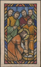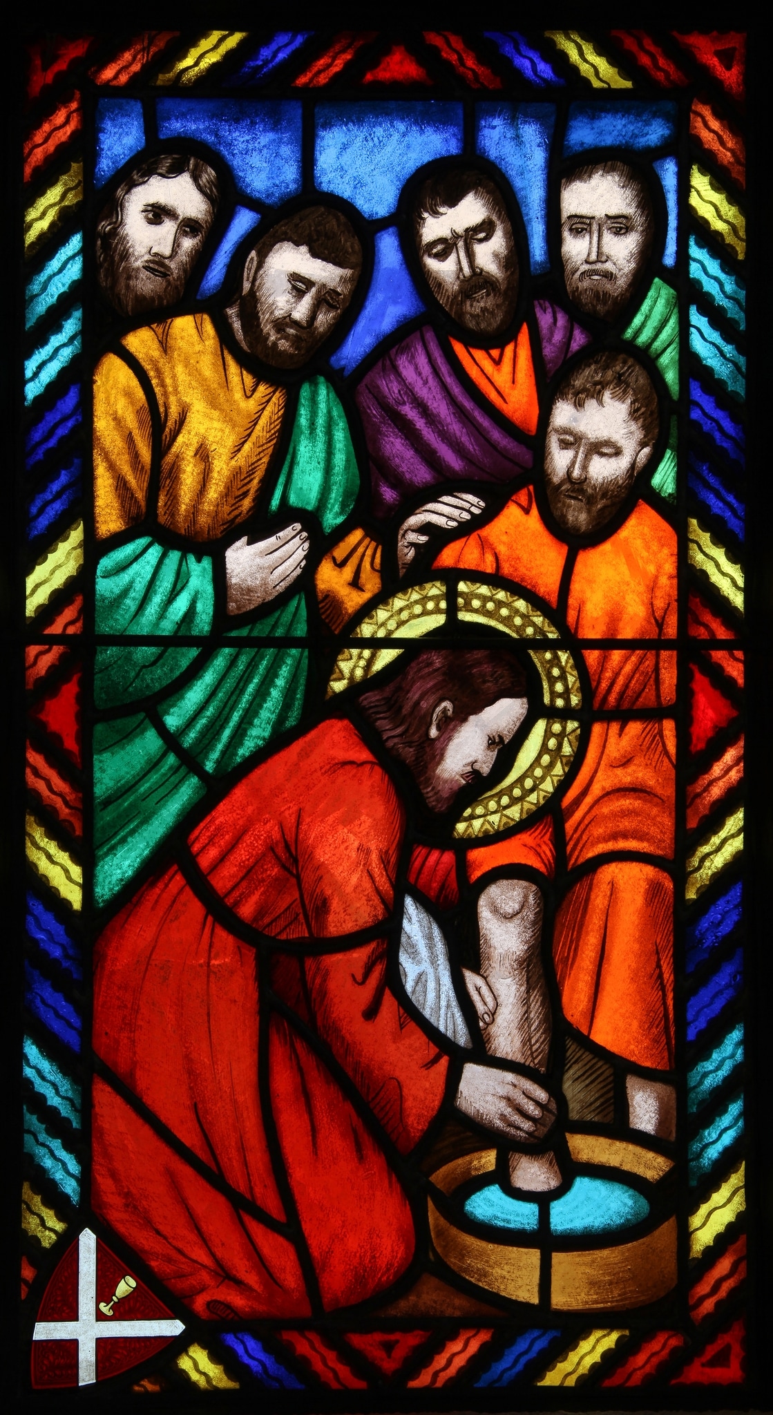 Ce petit vitrail relate l’épisode du lavement des pieds par le Christ.