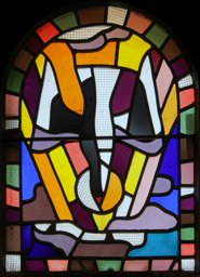 Pour les sept verrières du baptistère d’Orsonnens, Jordan choisit trois sujets différents : une étoile (celle de Bethléem), la colombe du saint Esprit et une barque portant la croix. Ces trois symboles évoquent la grâce baptismale : l’étoile comme guide, la barque comme signe de victoire sur toute tempête et la colombe de l’Esprit saint qui nous rappelle que nous avons été baptisés dans le Christ (Python, 2017, p. 153). L’artiste a placé la colombe face à la porte d’entrée du baptistère et a alterné ensuite l’étoile et le bateau, qui sont représentés chacun à trois reprises.