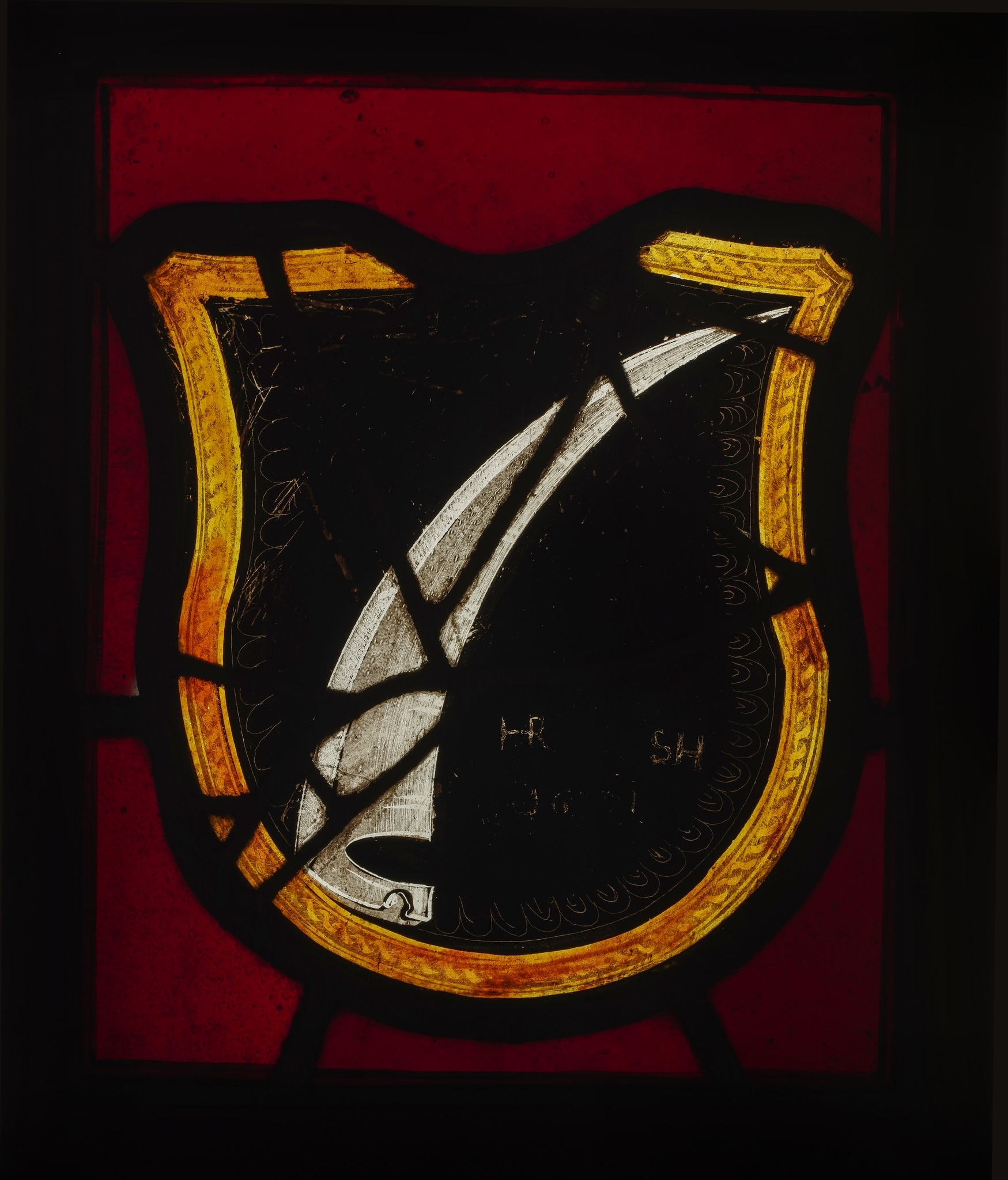 Ce fragment de vitrail, présentant des armoiries similaires à celles des Segesser von Brunegg (hormis l'absence de la croisette sur la faux), provient d’un panneau inconnu. Il pourrait avoir été commandé par un membre non identifié de cette famille de ministériaux, attestée en Argovie dès le milieu du XIIIe siècle (DHBS, 1932, p. 144). Après avoir reçu le château et la seigneurie de Brunegg en 1473, elle doit céder le fief à Berne à la Réforme (Maurer, 2012). Elle acquiert, par le biais de mariages et d'héritages, de nouveaux biens en Argovie, notamment dans la vallée de la Reuss, à Mellingen, Aarau ou Tägerig, ainsi qu'à Steinhausen, dans le canton de Zoug (Maurer, 2012). Au XVe siècle, la famille est attestée bourgeoise des villes sujettes d'Aarau, de Mellingen et de chefs-lieux de cantons-villes, tels que Lucerne où une branche de la famille accède au patriciat aux XVIe-XVIIe siècles (Maurer, 2012).