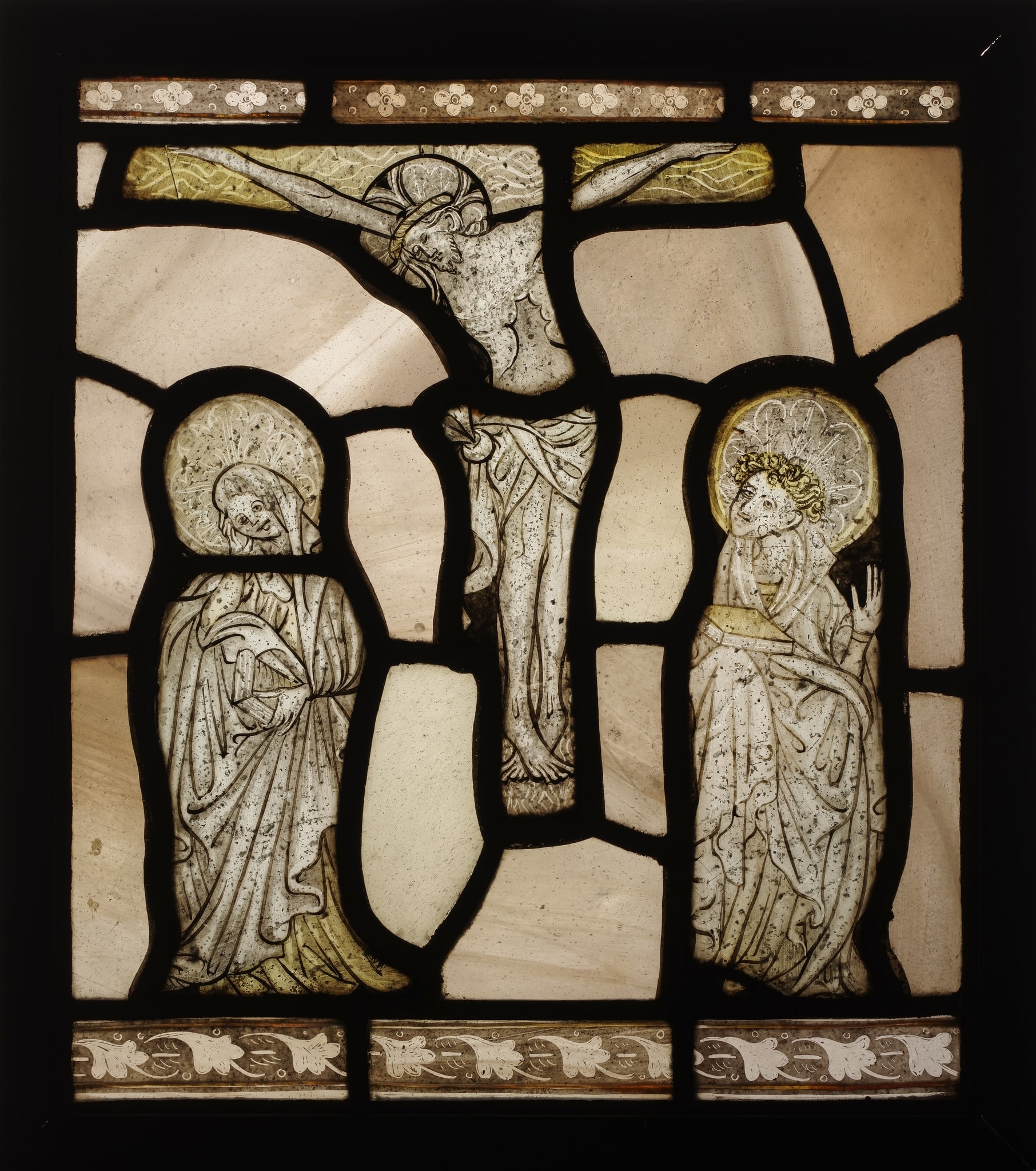 Un vitrail représentant une Crucifixion similaire avec Jean et Marie provenant de la ville de Soest en Allemagne, daté du début du XIIIe siècle (Lymant, 1982, p. 46, fig. 25), est aujourd’hui conservé au Musée des Arts Décoratifs de Cologne (inv. M 660). Bien que le style soit différent, la répartition des personnages, l’expression de leur douleur suite à la mort du Christ, ainsi que les bordures ornementales qui encadrent la scène rappellent le vitrail de l’Ariana.