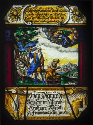 Ce vitrail forme un ensemble avec les panneaux offerts en 1635 par les couples Häfliger-Jensler et Wannenmacher-Remund illlustrant Daniel dans la fosse aux lions (GE_2188) et par Remund et Krattiger de Frauenkappelen figurant le sacrifice d’Isaac (GE_2198), tous trois conservés au Musée Ariana.