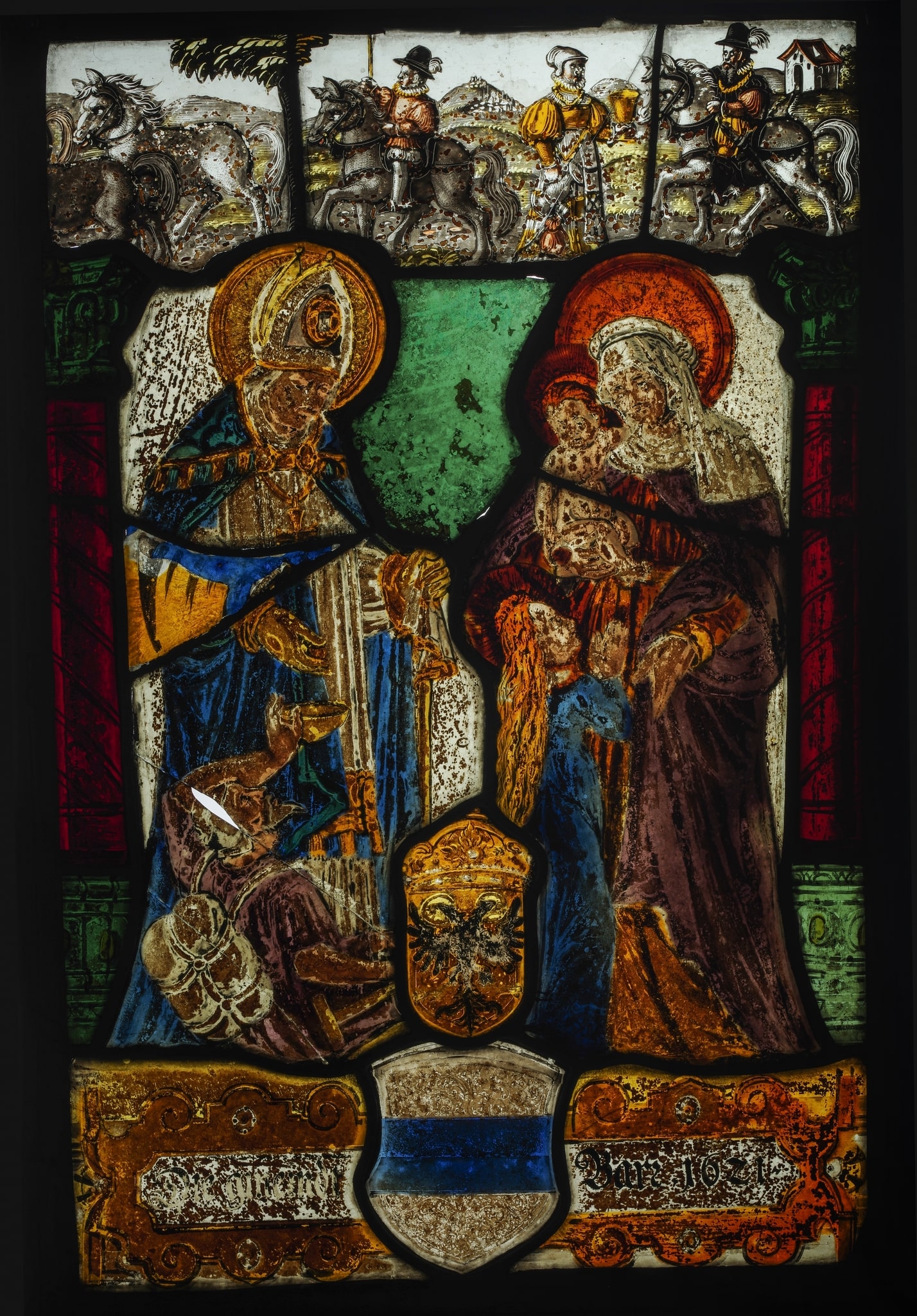 Vitrail communal de Baar aux armes de Zoug avec saint Martin et sainte Anne