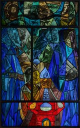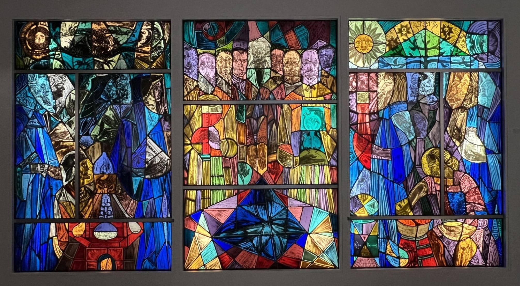 Le vitrail se compose de onze panneaux répartis en trois parties.