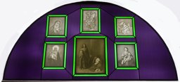 Le premier au centre est une copie d’un tableau de la Renaissance, La Madonne Sixtine, dite Madone de Dresde, de Raphaël. La Vierge à l’Enfant en pied au centre est encadrée par saint Sixte et sainte Barbe alors qu’au premier plan en bas deux putti sont accoudés.