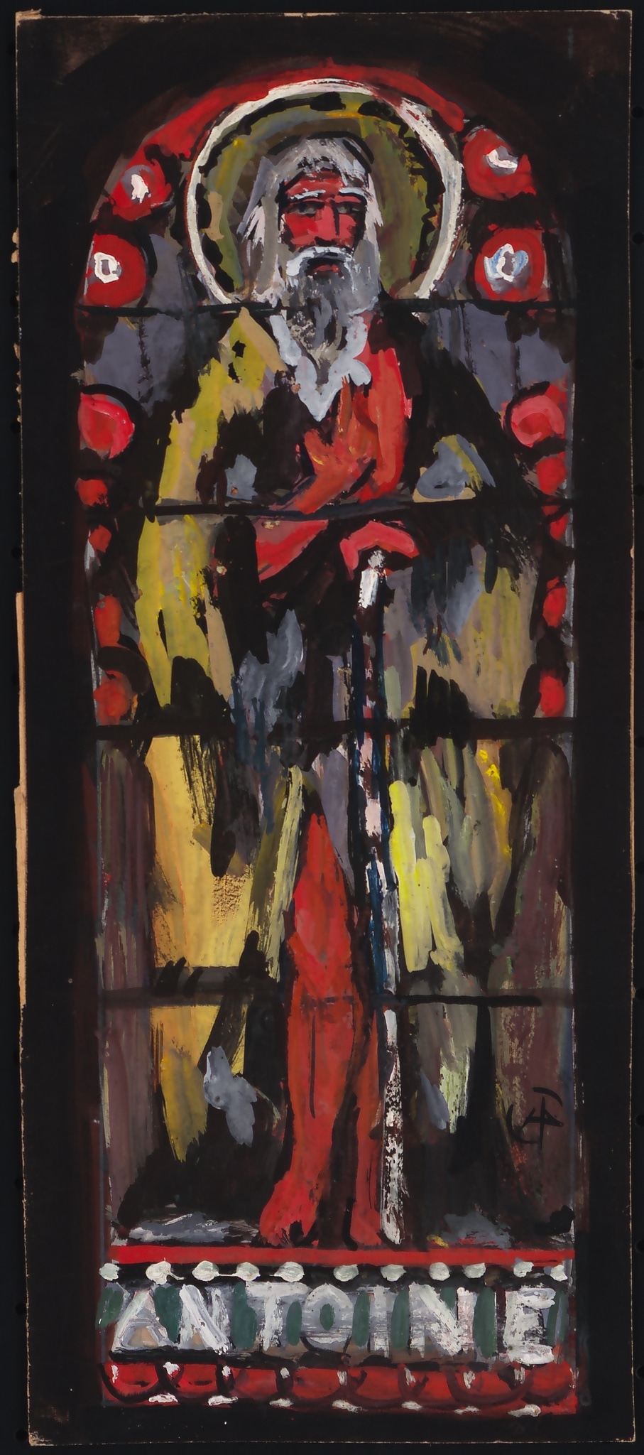 St. Antoine / vitrail Orsonnens (au verso en haut à gauche sur scotch blanc)