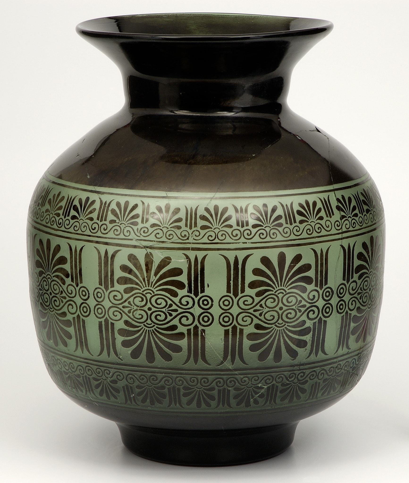 Le décor de palmettes gravé à l'acide est en rapport avec celui de trois autre vases du même modèle (STP_179, STP_269 et STP_270). Par ailleurs, Pierre-Albert Landgraf confirme que son père aurait possédé une copie de la publication présentant les modèles antiques. Dans son temps libre, Frantisek Landgraf a également effectué deux autres vases, gravés à l'acide. Doublés de verre rouge et d’une couche dorée, ils sont cependant techniquement plus complexes. Ces vases n'étaient pas disponibles pour cette recherche (Walther, 2025, 44).
