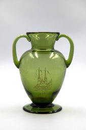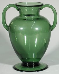 Les trois vases de 1949 – à renflement, à anses ou antiquisant – sont de taille réduite et forment un ensemble homogène. À la recherche de correspondances formelles, rappelons d’abord que la plupart des modèles antérieurs, créés en vue de l’Exposition nationale d’art appliqué de 1931, ont pu être attribués au céramiste Paul Ami Bonifas (1893-1967), chef de projet chargé du design. La collaboration avec František Landgraf (1904-1985), spécialiste du décor à froid, ainsi qu’avec un maître verrier italien formé à Murano, a également pu être démontrée. Si les pièces gravées à l’acide relèvent du travail de Landgraf, des rapprochements formels ont pu être établis tant avec de nombreux vases vénitiens qu’avec l’œuvre de Bonifas (Walther, 2025, 31-61). Ainsi, la forme de ce vase, inspirée de l’art antique, correspond autant à l’esthétique puriste de Bonifas qu’à l’art verrier vénitien des années 1920-1930.