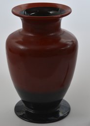 Ce modèle (188) de vase de la Verrerie artistique (1930-1964) a été commercialisé dès 1937. Les sources dont nous disposons sont des catalogues de la Verrerie de St-Prex, certains inédits. Il fait partie de l’offre des "Nouveautés", publiée en 1937 (Verreries de St-Prex, 1937, H 26 cm), qui est disponible en verre vert (VV), émaillé en noir, rouge-brillant et rouge-mat (N, RB et RM), en bleu-brillant et bleu-mat (BB et BM), en argenté lustré et craquelé (AL et AC), et finalement en or bordé, lustré ou craquelé (OB, OL et OC). Il figure finalement dans un répertoire non publié, qui, basé sur les numéros d’inventaire des catalogues de 1935 à 1960, dresse la liste de tous les modèles de la production artistique (Verreries de St-Prex, 1964, H 26 cm). D’après les sources, ce modèle est ainsi mis en vente dès 1937 et produit jusqu’en 1964.