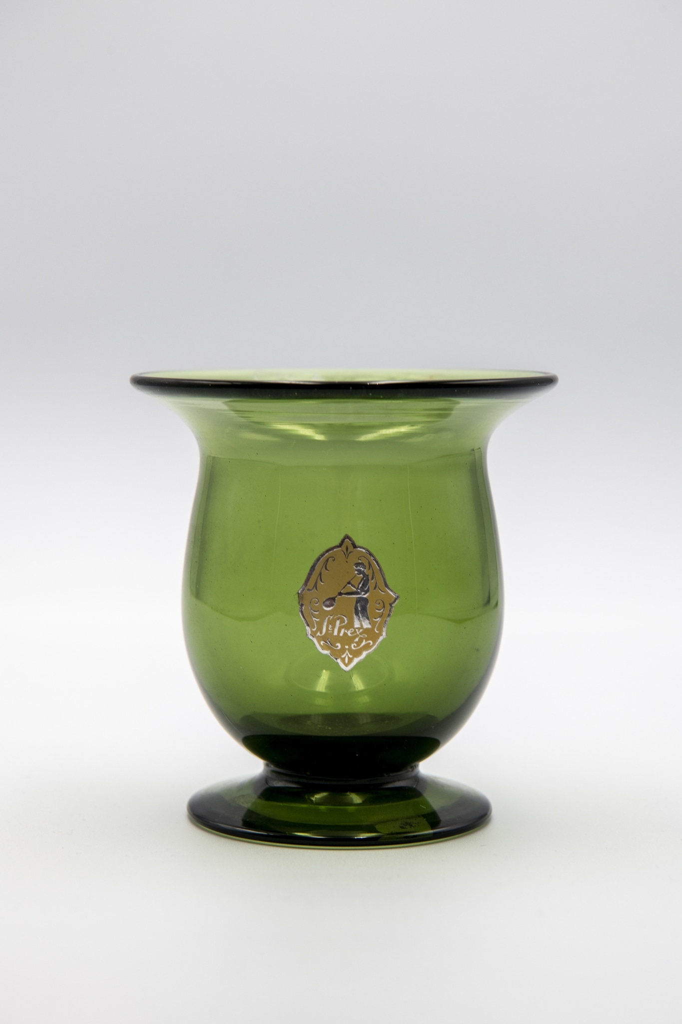Ce modèle de vase (128) fut créé à une période précoce de la Verrerie artistique (1930-1964). Les sources dont nous disposons sont des catalogues de la Verrerie de St-Prex, certains inédits, tels que les albums noirs munis de photographies de vases, vraisemblablement utilisés par les représentants de 1931 à 1935, où ce modèle porte le no 184. Il est disponible en verre vert ou émaillé noir (Verreries de St-Prex, 1931, H 10 cm). Ce modèle fait également partie de l’offre du premier catalogue de vente imprimé de 1935 (Verreries de St-Prex, 1935, 7), où il est présenté en verre vert.