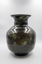 Ce modèle de vase (156) fut créé à une période précoce de la Verrerie artistique (1930-1964). Les sources dont nous disposons sont des catalogues de la Verrerie de St-Prex, certains inédits, tels que les albums noirs munis de photographies de vases, vraisemblablement utilisés par les représentants de 1931 à 1935, où ce modèle porte le no 4 (Verreries de St-Prex, 1931). Les vases correspondant à ce numéro ne sont cependant pas identiques. En effet, ils varient par leur taille (de 23 à 31 cm) et leur diamètre. L’élément commun est la forme générale: un talon creux de diamètre plus ou moins égal à celui du col qui soutient une panse volumineuse, soit droite, soit tronconique. Le col, dont la longueur varie, peut comporter des renflements. Ainsi, ces vases étaient probablement soufflés sans l’usage de moule. Ce modèle fait également partie de l’offre du premier catalogue de vente imprimé en 1935 (Verreries de St-Prex, 1935, 5), où il apparaît en verre vert. Il figure ensuite dans un répertoire non publié, qui, basé sur les numéros d’inventaire des catalogues de 1935 à 1960, dresse la liste de tous les modèles de la production artistique (Verreries de St-Prex, 1964, H 28 cm). Il n’est plus proposé dans le catalogue de 1951 (Verreries de St-Prex, 1951). D’après les sources, ce modèle a été ainsi élaboré dès 1931 et produit jusqu’en 1950 environ.