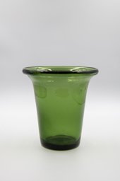 Verre vert soufflé en moule, lèvre évasée; forme: panse tronconique