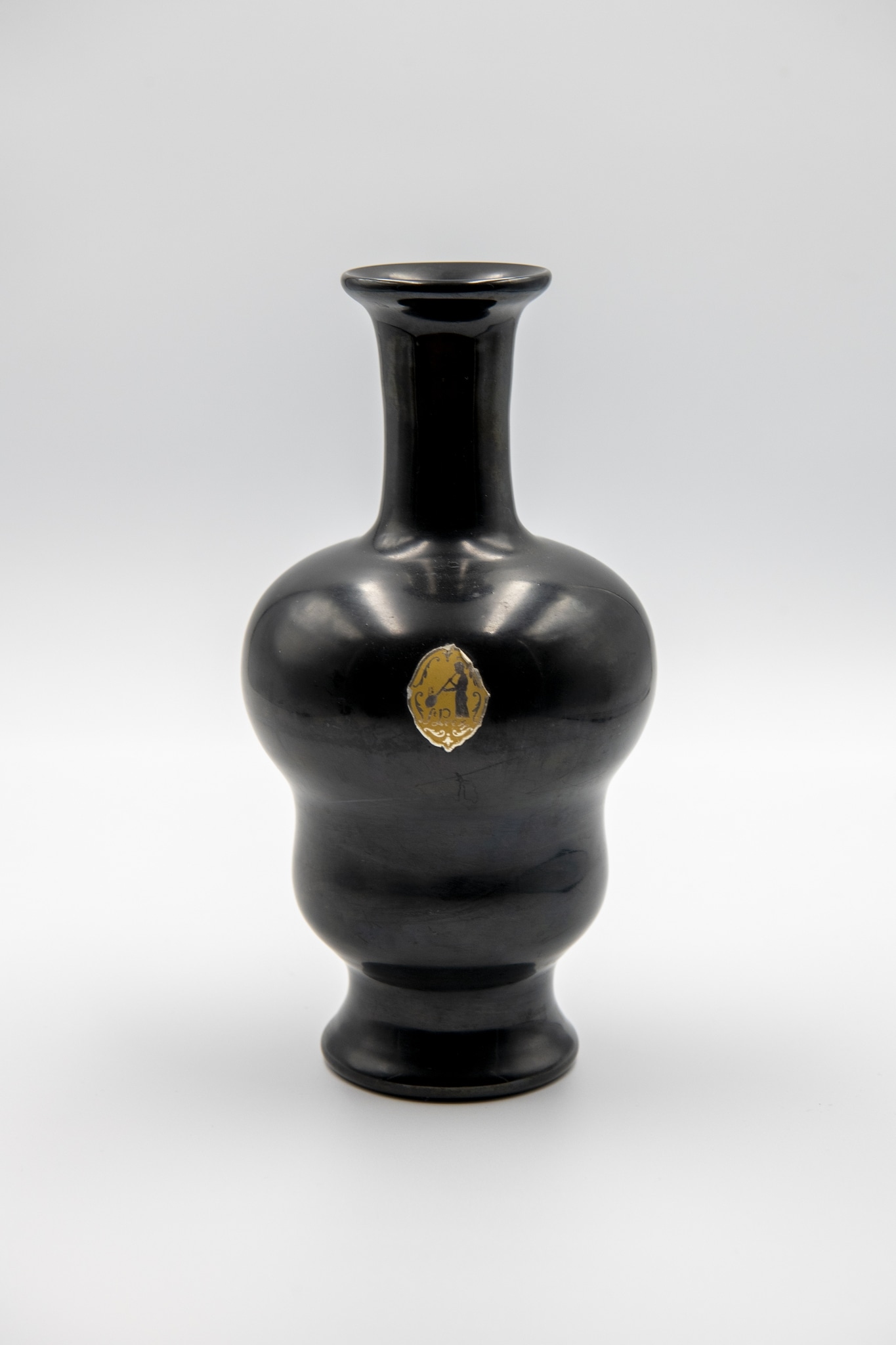 Sans le timbre doré des premières années ou d’autres particularités, rien ne suggère que le vase présenté ici ait été produit avant 1935. En revanche, le revêtement émaillé noir faisait déjà partie du catalogue en usage de 1931 à 1935.