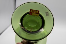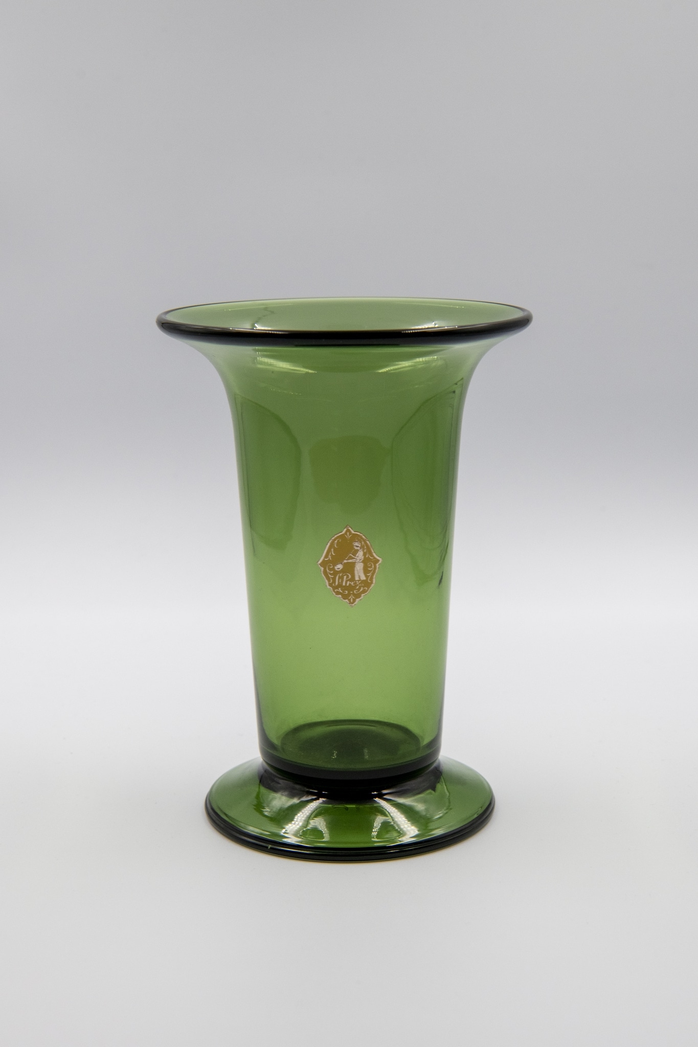 Le verre vert fait partie de l'offre de la Verrerie artistique dès 1931. Il est également diffusé dans le catalogue de vente de 1935. La même année, l'étiquette dorée prend le relais sur les timbres à l'acide gravés le fond du verre. Ces étiquettes peuvent cependant être collées a posteriori sur des vases réalisés auparavant.