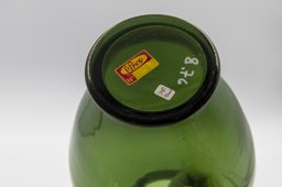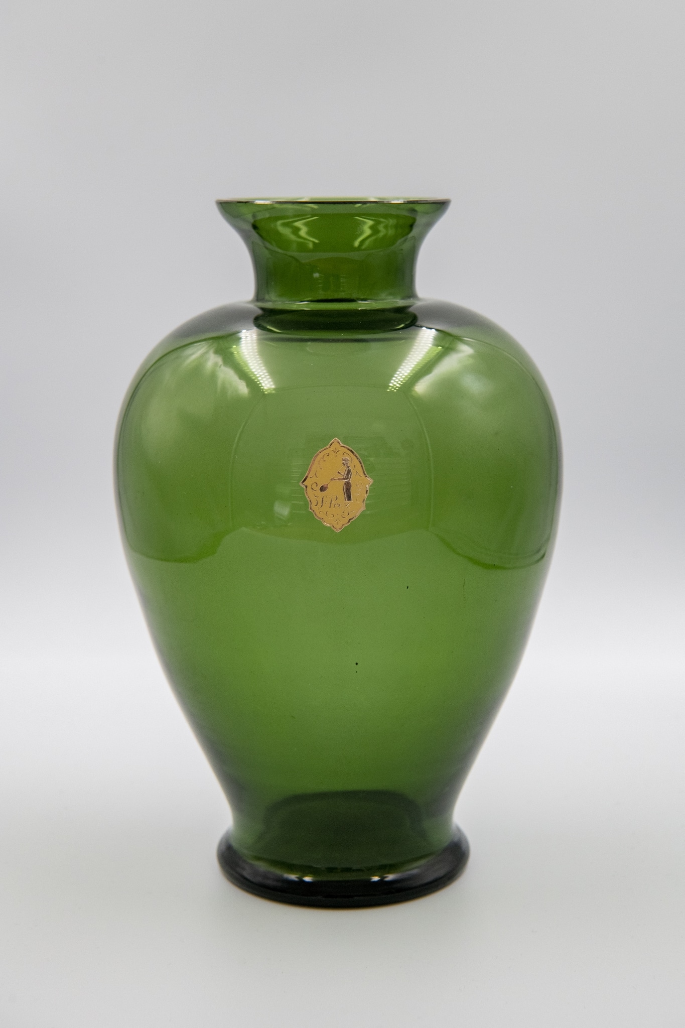 Le vase proposé ici a été réalisé entre 1937, date du modèle, et 1964. Lorsque les pièces en verre vert ne présentaient ni impuretés ni défauts de fabrication, elles étaient commercialisées telles quelles. Sinon, elles servaient de base à la réalisation de modèles émaillés.