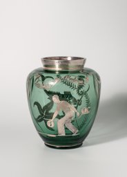 Les trois vases proposés dans le catalogue de 1949 – à renflement, à anses ou antiquisant – sont de taille réduite et forment un ensemble homogène. À la recherche de correspondances formelles, rappelons d’abord que la plupart des modèles antérieurs, créés en vue de l’Exposition nationale d’art appliqué de 1931, ont pu être attribués au céramiste Paul Ami Bonifas (1893-1967), chef de projet chargé du design. La collaboration avec František Landgraf (1904-1985), spécialiste du décor à froid, ainsi qu’avec un maître verrier italien formé à Murano, a également pu être démontrée. Si les pièces gravées à l’acide relèvent du travail de Landgraf, des rapprochements formels ont été établis tant avec l’œuvre de Bonifas qu’avec de nombreux vases vénitiens (Walther, 2025, 31-61).