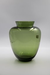 Ce modèle (196) de vase de la Verrerie artistique (1930-1964) a été commercialisé dès 1949. Les sources dont nous disposons sont des catalogues de la Verrerie de St-Prex, certains inédits. Il fait partie du "supplément" publié en 1949 (Verreries de St-Prex, 1949, 7), une offre disponible en verre vert, émaillé noir, rouge, bleu et or craquelé. Il figure enfin dans un répertoire non publié, qui, basé sur les numéros d’inventaire des catalogues de 1935 à 1960, dresse la liste de tous les modèles de la production artistique (Verreries de St-Prex, 1964, H 18). D’après les sources, ce modèle est ainsi mis en vente en 1949 et produit jusqu’en 1964. Dans la critique récente, il est reproduit chez Dreyfus (Dreyfus, 1981, 13 et 21). Au dépôt du Musée du Verrier, il existe aussi deux vases en argent craquelé et noir avec inscription : 9e GIRON DES CHANTEURS DE L'AUBONNE / ST-PREX / 1964.
