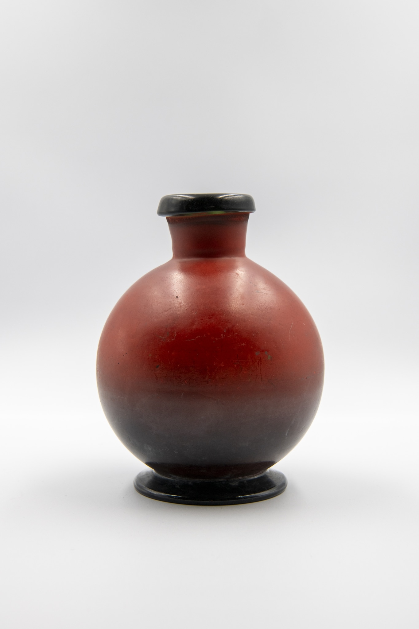 Vase boule, émaillé noir et rouge, à pied, col droit et lèvre retournée