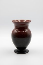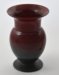 Ce modèle de vase (144) fut créé à une période précoce de la Verrerie artistique (1930-1964). Les sources dont nous disposons sont des catalogues de la Verrerie de St-Prex, certains inédits, tels que les albums noirs munis de photographies de vases, vraisemblablement utilisés par les représentants de 1931 à 1935, où ce modèle porte le no 165 (H 23-43 cm). Il est disponible en verre vert, émaillé noir, rouge, et argenté craquelé (Verreries de St-Prex, 1931). Ce modèle fait également partie de l’offre du premier catalogue de vente imprimé de 1935 (Verreries de St-Prex, 1935, no 144, 2, 12, et 16), où ce vase est décliné en verre vert, or lustré et en noir.