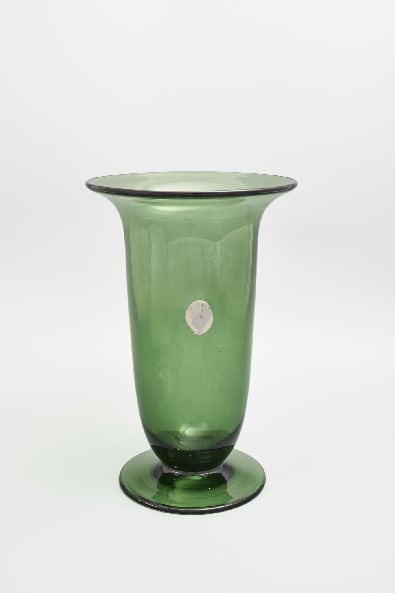 Sans le timbre doré des premières années ou d’autres particularités, le vase présenté ici a probablement été produit après 1935. À en juger par ses dimensions – seuls les vases de 12 cm étant encore produits après 1960 – il a été réalisé avant cette date, comme le suggère l'étiquette munie du souffleur.